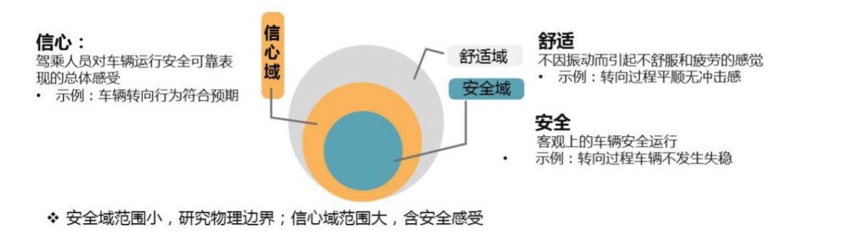 除上述表征車輛安全運(yùn)行的度量指標(biāo)外,駕乘人員的心理感受對(duì)自動(dòng)駕駛功能的安全性評(píng)價(jià)會(huì)產(chǎn)生重要影響,甚至直接影響車輛的運(yùn)行安全(若人員缺乏信心可能產(chǎn)生誤干預(yù))。為此,項(xiàng)目組針對(duì)預(yù)期功能安全(SOTIF)信心度開展了研究,建立信心度評(píng)價(jià)的主客觀對(duì)應(yīng)關(guān)系,提出不同自動(dòng)駕駛等級(jí)下信心度評(píng)價(jià)指標(biāo)。