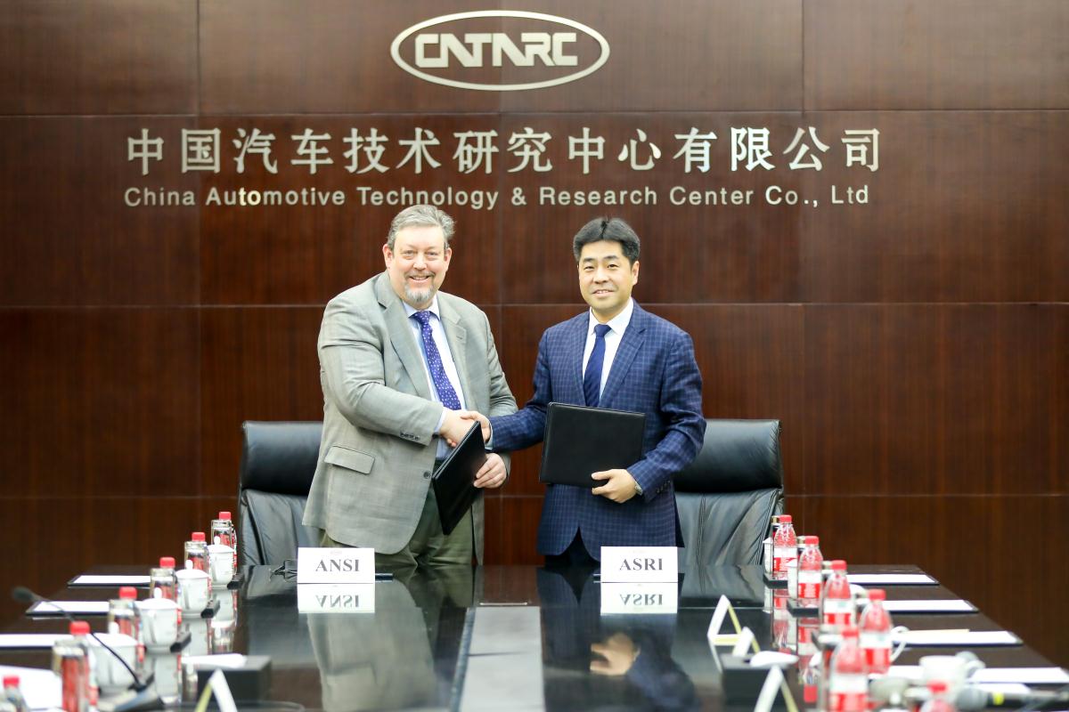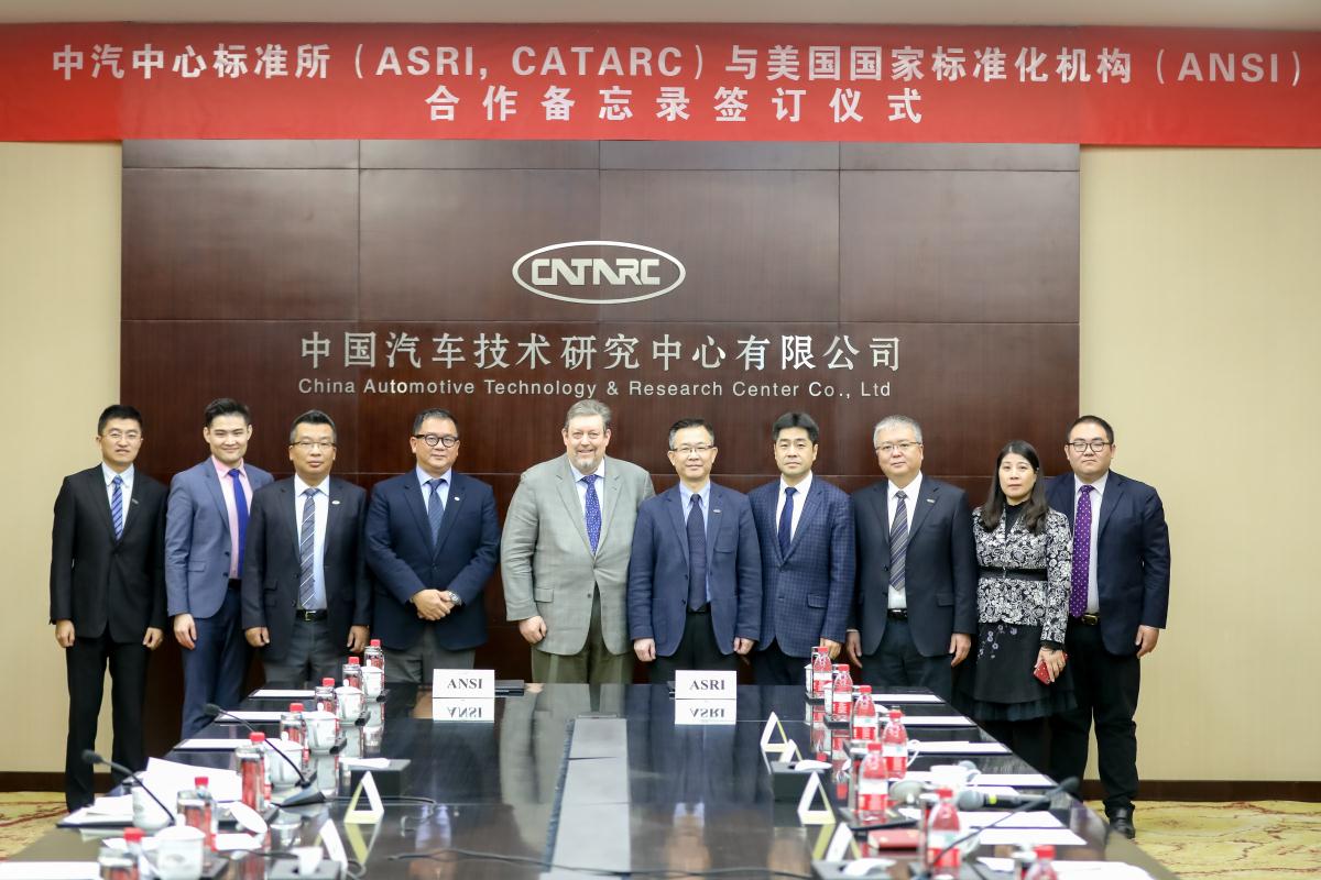 2019年12月18日上午,中汽中心標準所與美國國家標準化機構(ANSI)合作備忘錄簽訂儀式在中汽中心主院區(qū)舉行,中汽中心黨委書記、董事長、總經理安鐵成接待ANSI到訪專家并出席簽訂儀式,中心辦公室、投資與運營管理部相關負責人參加。