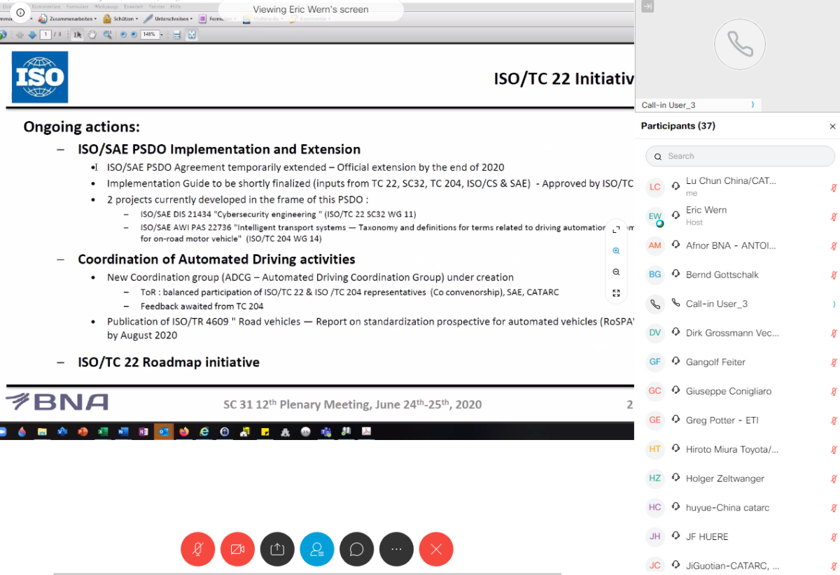 2020年6月16-17日,國際標(biāo)準(zhǔn)化組織道路車輛委員會(huì)電子電氣部件及通用系統(tǒng)分技術(shù)委員會(huì)(ISO/TC22/SC32)第6次年會(huì)以視頻形式召開。