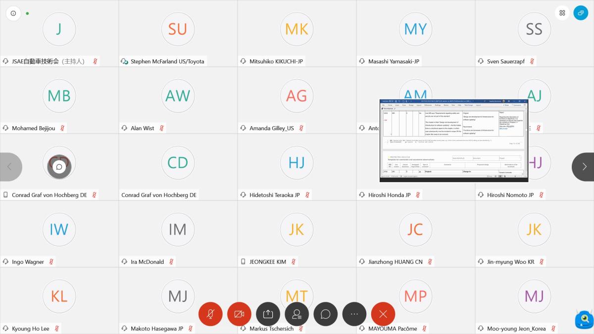 北京時間2020年7月13日至17日,國際標準化組織軟件升級工作組(ISO/TC22/SC32/WG12)第4次會議以網(wǎng)絡會議形式召開,來自中國、日本、德國、美國等13個正式成員國的40余位專家參加了本次會議。中國汽車技術(shù)研究中心有限公司張行、劉洋洋,上海汽車集團股份有限公司黃建中,北京新能源汽車股份有限公司王海川共4人代表中國參會。