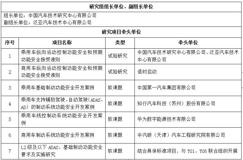 TG2-車輛行為安全接受準(zhǔn)則研究組(縱向)的主要研究目標(biāo):基于GB/T 34590《道路車輛 功能安全》、GB/T 43267《道路車輛 預(yù)期功能安全》給出的方法論,針對ABS、ESC、AEB、電子助力、電子駐車、電力再生制動、制動輔助(BA)、車輛縱向運(yùn)動控制VLC、制動冗余系統(tǒng)、線控制動等縱向運(yùn)動控制相關(guān)系統(tǒng)和功能,研究其功能異常行為與車輛參數(shù)及安全接受準(zhǔn)則間的關(guān)系,識別典型危害行為、場景,建立適用于新能源汽車、智能網(wǎng)聯(lián)汽車、傳統(tǒng)汽車的車輛側(cè)向運(yùn)動行為安全接受準(zhǔn)則(如可控性、信心度等量化指標(biāo))和測評方法,開發(fā)車輛縱向運(yùn)動控制系統(tǒng)典型安全架構(gòu)及方案。